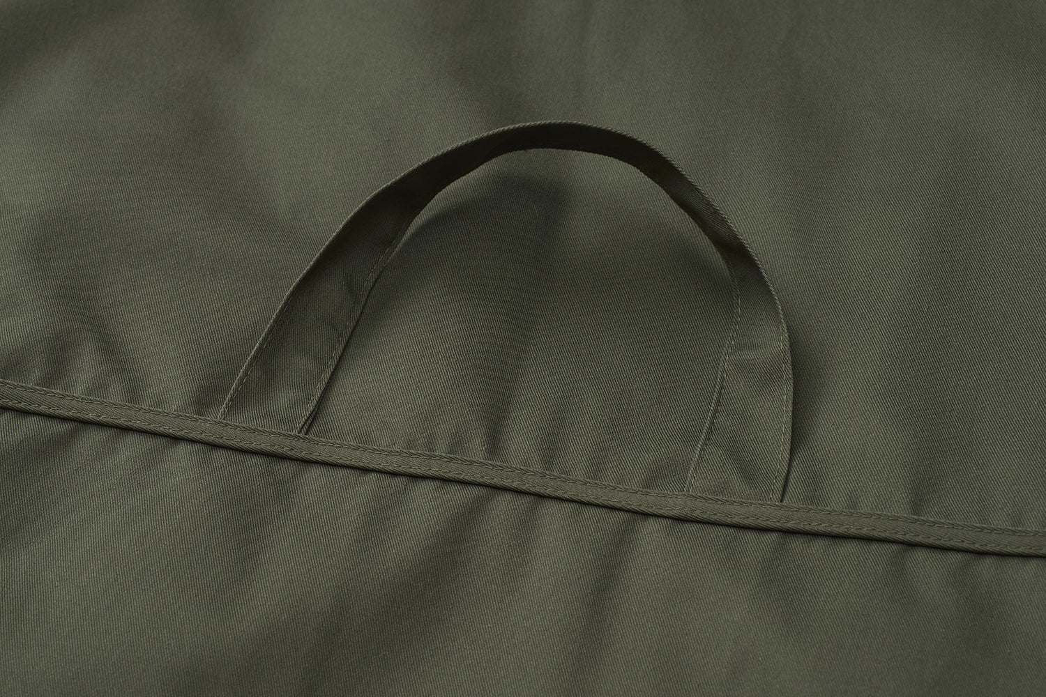 constructed from a high-density fabric in a muted, grey-tinted olive tone.